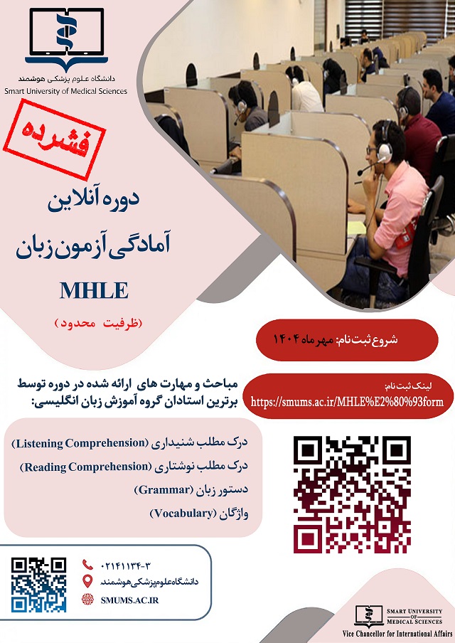 با توجه به ماموریت محول شده به دانشگاه علوم پزشکی هوشمند، جهت برگزاری دوره های توانمند سازی متقاضیان شرکت در آزمون سنجش سطح زبان و مهارت زبان انگلیسی وزارت بهداشت، درمان و آموزش پزشکی (MHLE) از طرف دبیرشورای عالی برنامه ریزی، هماهنگی های لازم به منظور برگزاری مجدد این دوره، با تدریس اساتید منتخب و برجسته گروه زبان پزشکی انجام شده است.